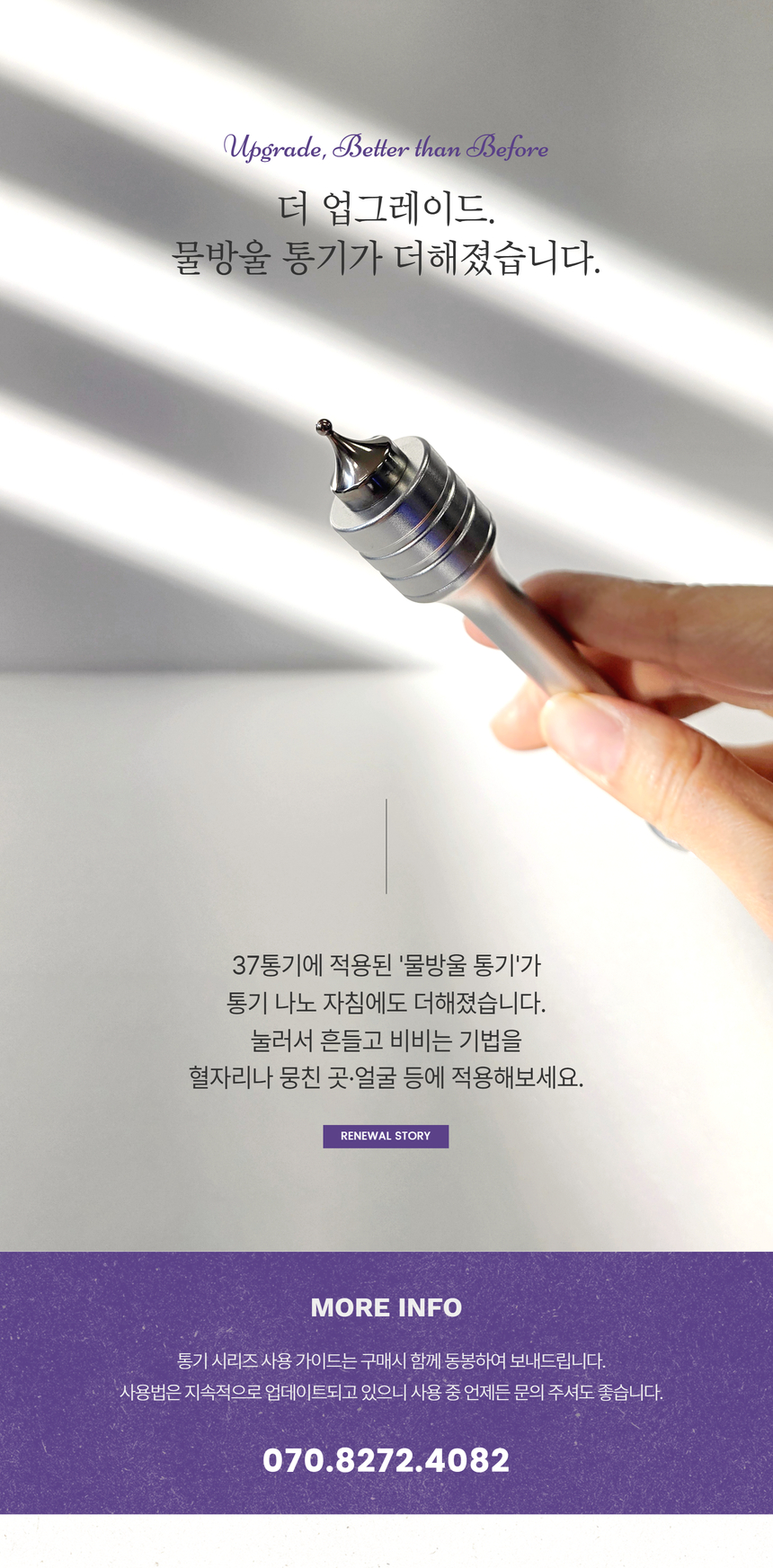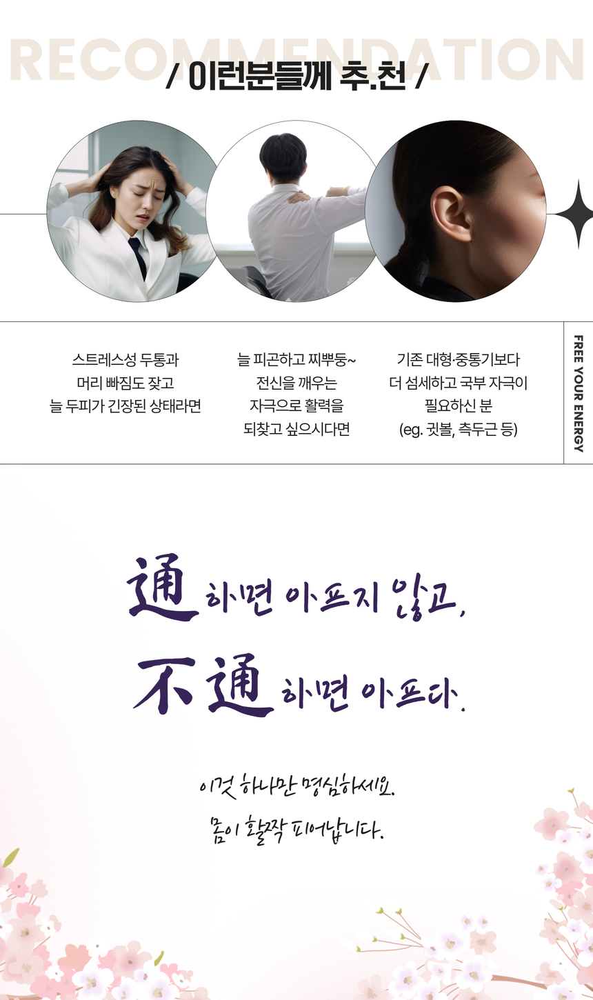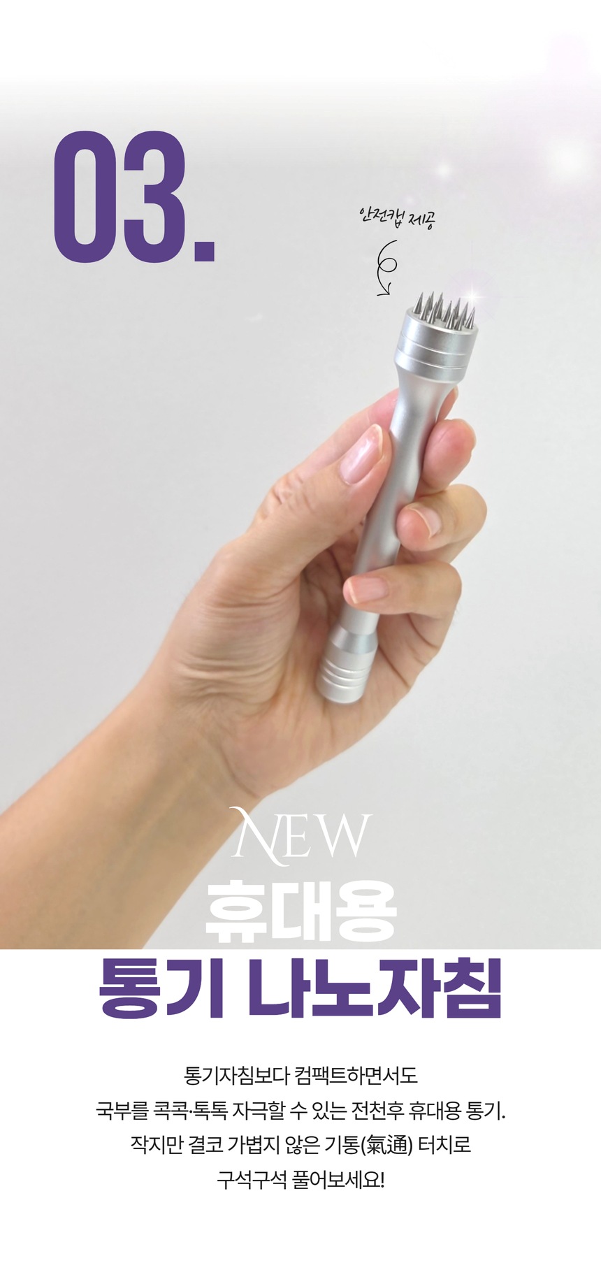 섬세하게 다뤄야 하는 얼굴, 유양돌기, 두피를 비롯한 각종 경혈점을 부드럽게 콕콕 자극하는 컴팩트한 휴대용 통기 마사지기