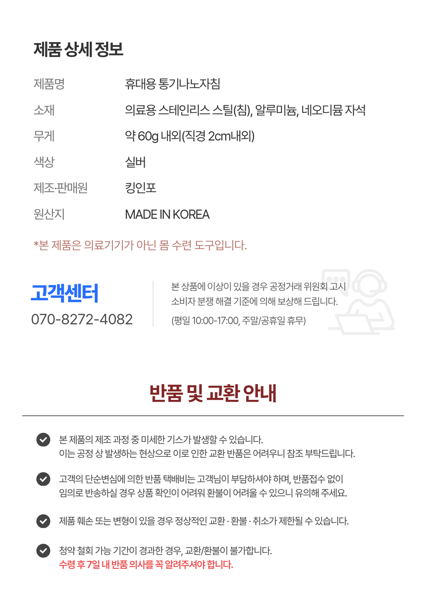 마사지기라는 제품의 특성상, 개인위생 관련 이유로 사용 후 단순 변심에 의한 반품 및 교환은 불가능합니다.